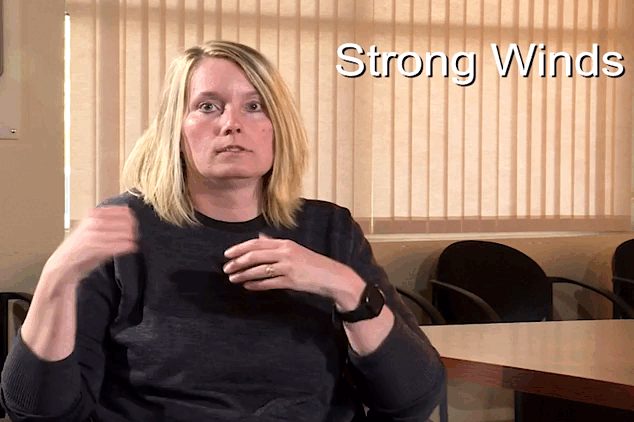 Then do the sign for strong winds, as explained above.